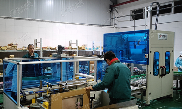紅豆罐頭食品的加工工藝中,需用自動洗罐、罐裝、封口、自動洗罐、風(fēng)干、開箱機、裝箱、封箱等工藝,依據(jù)用戶廠房倉庫的面積和產(chǎn)量、罐型等特性,我廠技術(shù)員參觀考察和用戶交流后,項目確定選用自動洗罐機、風(fēng)干、自動開箱機、裝箱、封箱等,該江蘇紅豆罐頭食品包裝生產(chǎn)線選用自動化生產(chǎn)線設(shè)備,機架選用304不銹鋼,西門子PLC電控PLC觸摸屏、使用方便、精度高。該紅豆罐頭生產(chǎn)線用戶,是我司的老顧客, 前幾年在我廠選購了一臺罐頭脫氣機,使用運行良好,此次作為再次合作,依據(jù)用戶目前還有產(chǎn)品的特性,我廠現(xiàn)場出了訂制性方案,用戶很是認同。