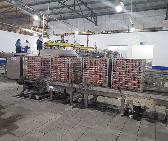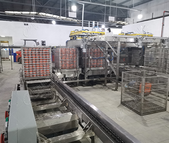 客戶(hù)的產(chǎn)品是馬口鐵罐紅燒肉罐頭,根據(jù)客戶(hù)的廠房面積、物料、包材特點(diǎn)及產(chǎn)量,我們?yōu)榭蛻?hù)提供紅燒肉罐頭生產(chǎn)線設(shè)備(磁力空罐卸垛、空罐洗罐、輸送、提升、實(shí)罐清洗、裝卸籠、吹干、碼垛等設(shè)備),投產(chǎn)期間使用良好,后期客戶(hù)又和我司簽訂了午餐肉罐頭生產(chǎn)線設(shè)備合作。